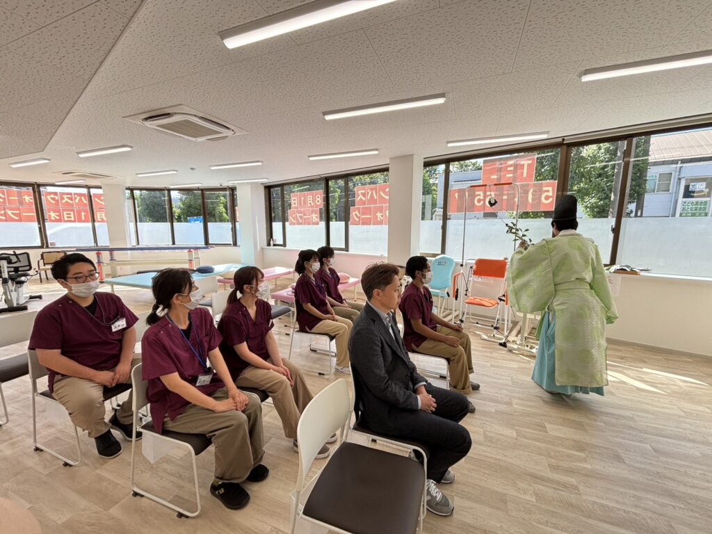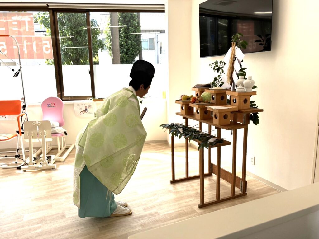 令和7年7月30日、コンパスウォーク古国府にて、開所式を無事執り行いました。式典には、由緒ある柞原八幡宮より神主様をお迎えし、厳かな雰囲気の中で神事が進められました。