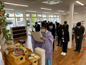 4月16日 開業安全祈願の神事を柞原八幡宮の神主さんにより執り行われました。